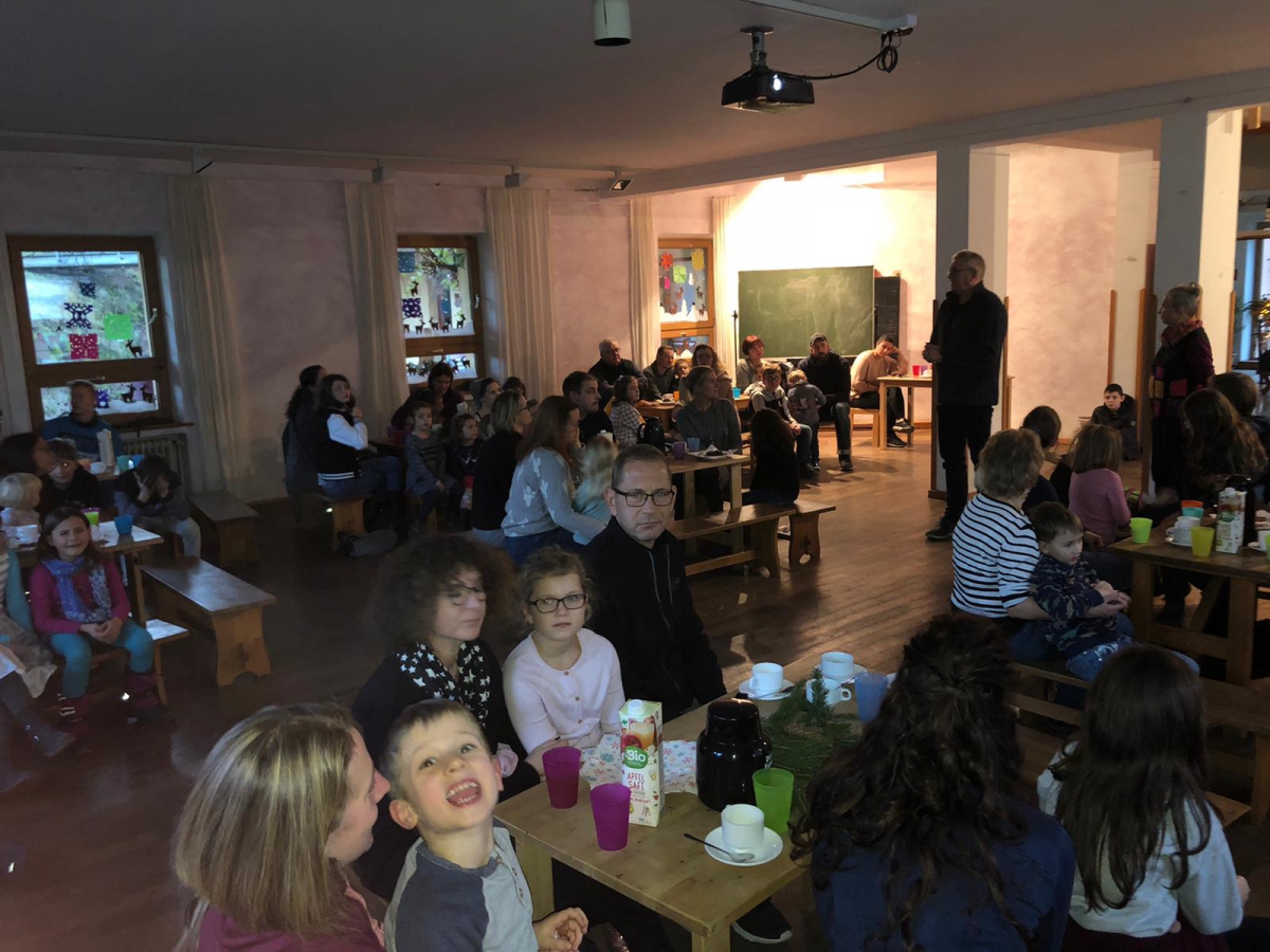 Am 4.12.2019 trafen sich die Eltern und Erziehungsberechtigten der Klassen 1 bis 4 am Nachmittag im schön geschmückten Saal der FSK. Gemeinsam wurden Weihnachtslieder gesungen. In der Pause sorgten Weihnachtsplätzchen und Apfelpunsch für eine gemütliche Stimmung.