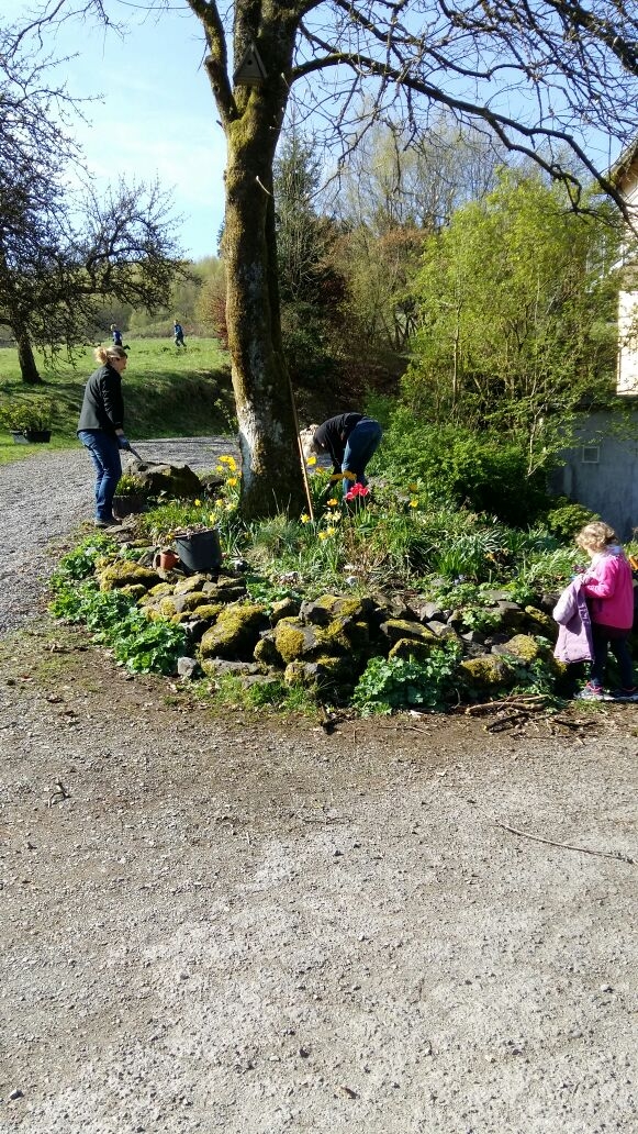 Bei wunderschönem Frühlingswetter pflegten und gestalteten 42 Erwachsene sowie 30 Schüler und Schülerinnen am 6. Mai 2017 das riesige naturnahe Schulgelände.